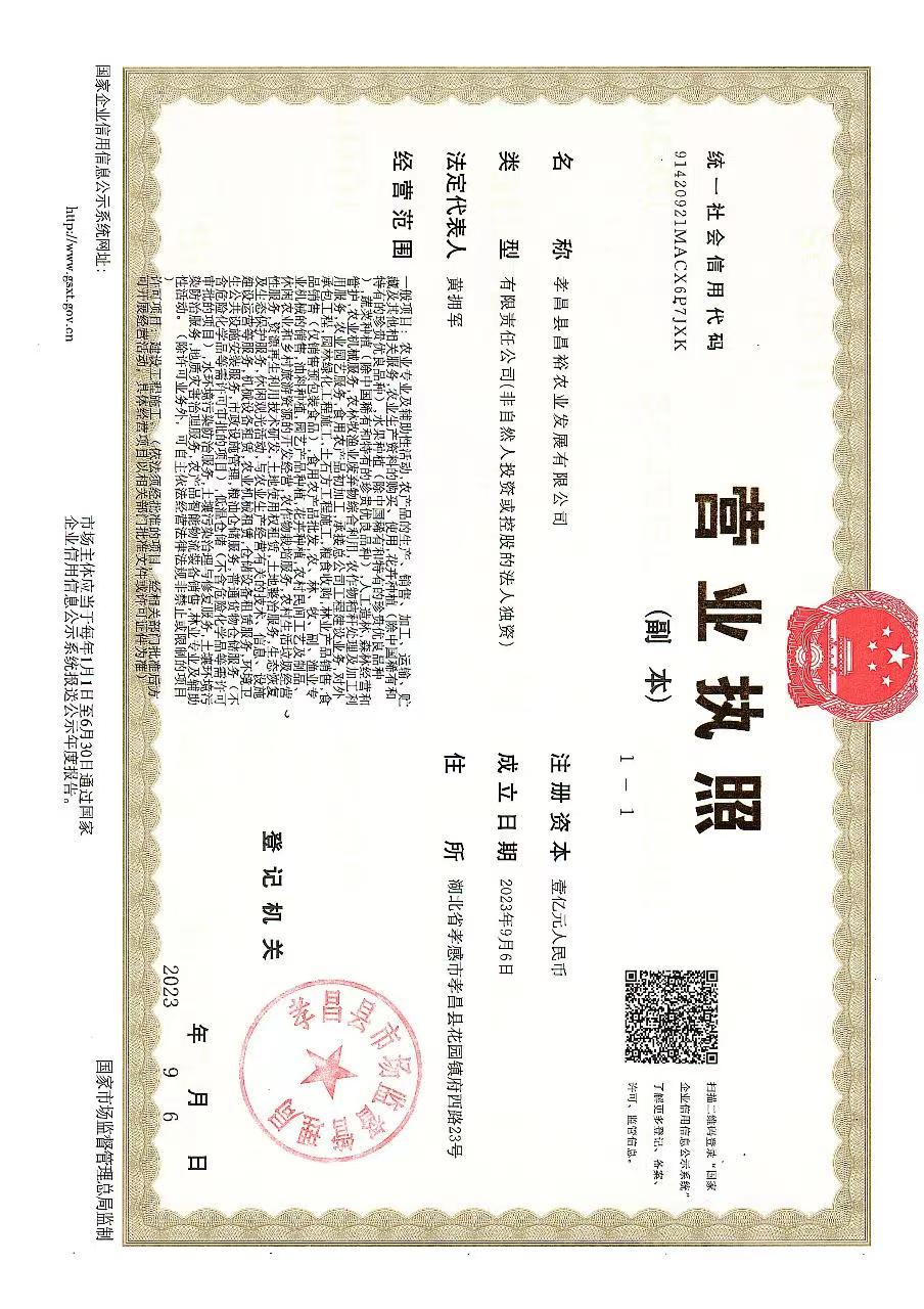 孝昌縣昌裕農業發展有限公司?????孝昌昌裕農業發展有限公司成立于2023年9月6日…